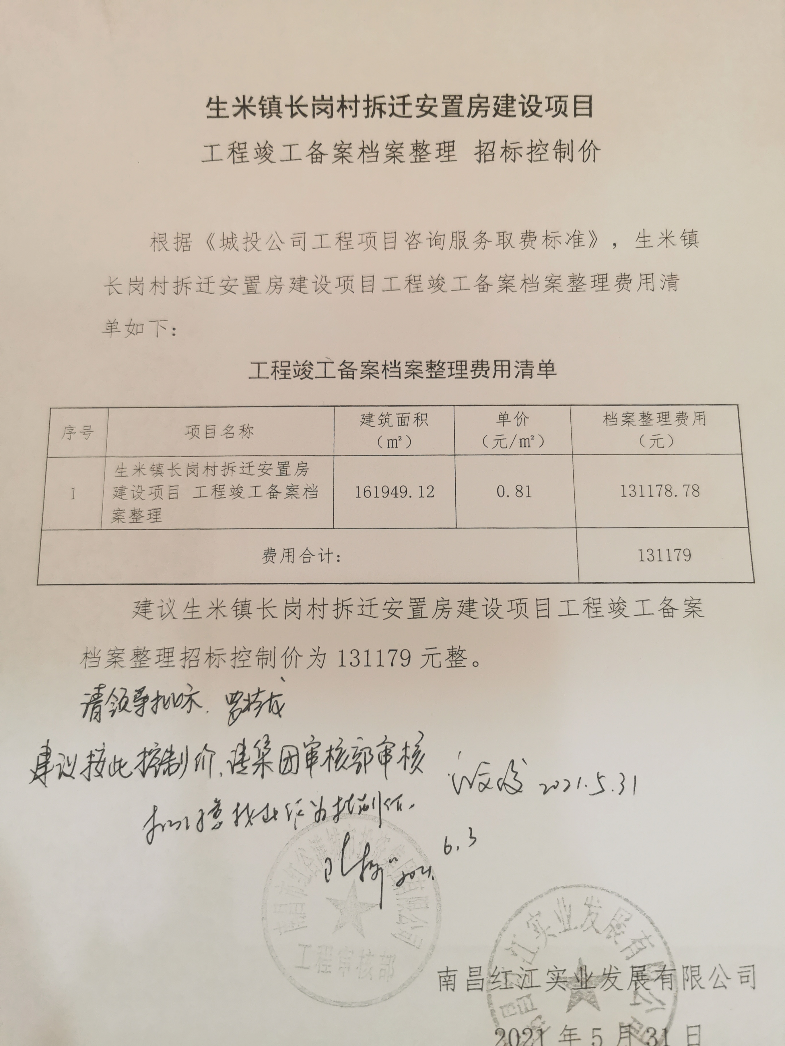 二、 工程招标控制价约:131179元。